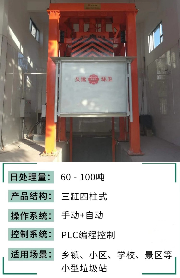 垂直式垃圾壓縮設(shè)備在原立式壓縮站的基礎(chǔ)上將單杠直壓變?yōu)槿淄瑝?,大大降低了房屋高度,科技含量高;采?2只液壓油缸控制運行,操作更加靈活簡便,性能穩(wěn)定。該產(chǎn)品適用于城鎮(zhèn)生活垃圾的儲存、壓縮和轉(zhuǎn)運,通常可設(shè)置在靠近街道及居民生活小區(qū)內(nèi),是當(dāng)今生活垃圾處理的理想設(shè)備。